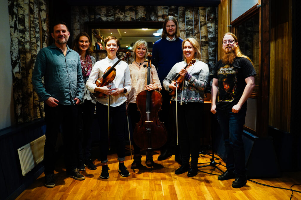 En av inspelningarna var speciell då vi anlitade Daphnetrion som tillsammans med pianot utgjorde en stråkkvartett för tre av sångerna. Daphnetrion består normalt av Karin Berggren (violin), Heather Levenstein (viola) och Kerstin Andersson (cello), men för detta inspelningstillfälle ersättare Tuula Fleivik Nurmo (viola). Arrangemangen till dessa tre stråkkvartettsånger beställdes och utfördes av kompositören Frej Wedlund (hemsida).